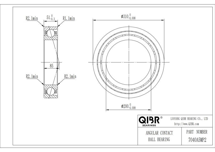 QIBR - 7040A5MP2 Радиально-Упорный Шариковый Подшипник Характеристики