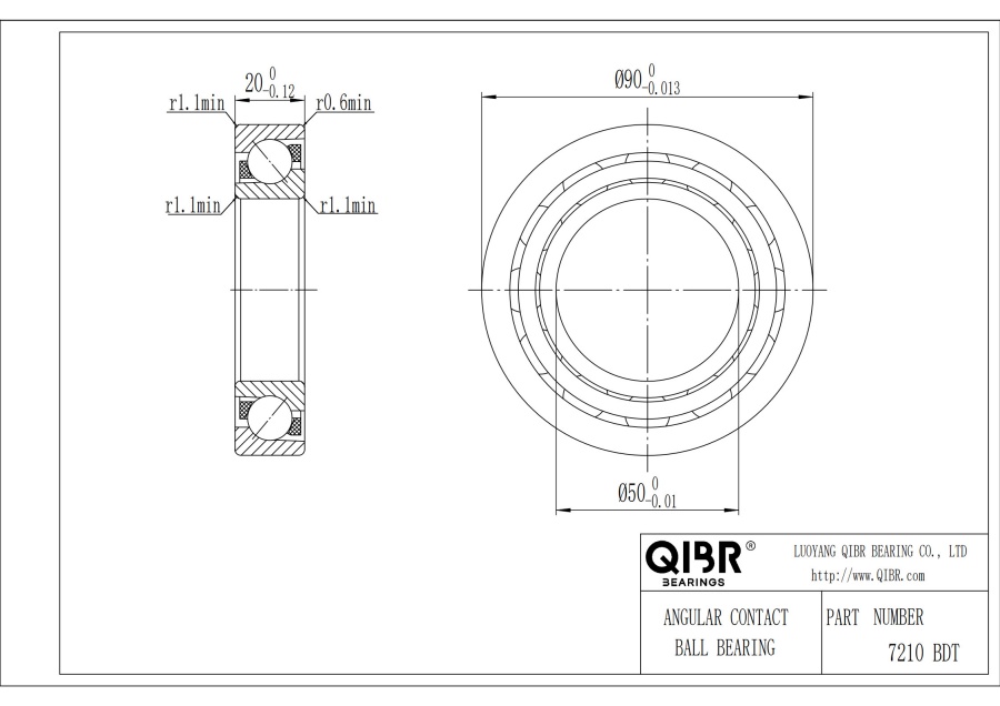 QIBR - 7210 BDT Радиально-Упорный Шариковый Подшипник Характеристики