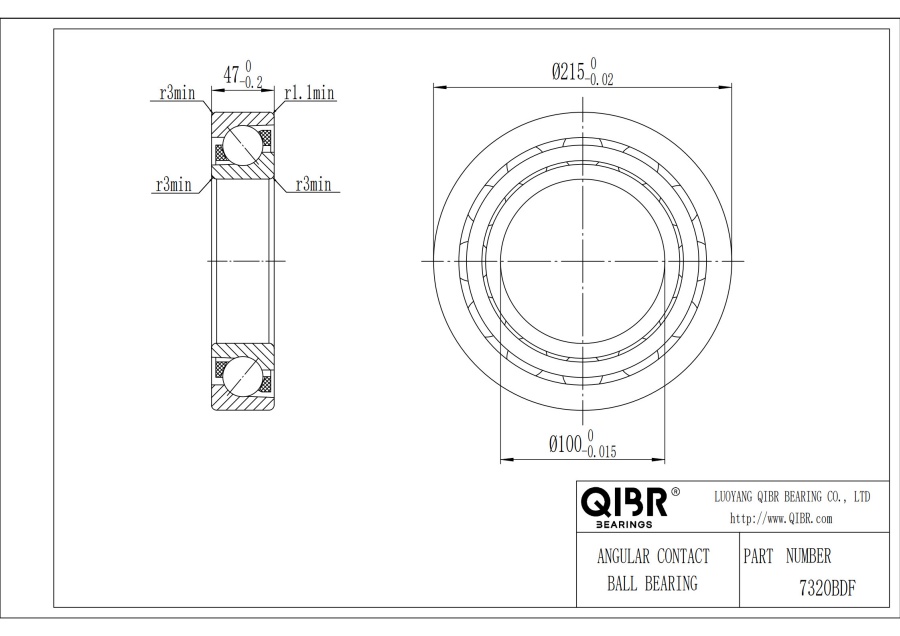 QIBR - 7320BDF Радиально-Упорный Шариковый Подшипник Характеристики