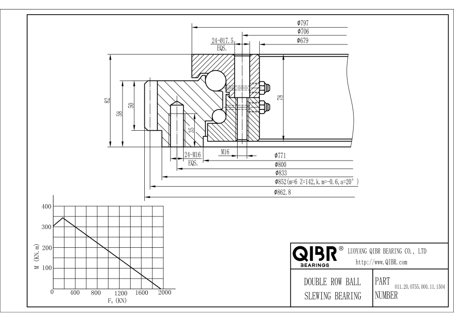 QIBR - 011.20.0755.000.11.1504 Поворотный Подшипник Характеристики